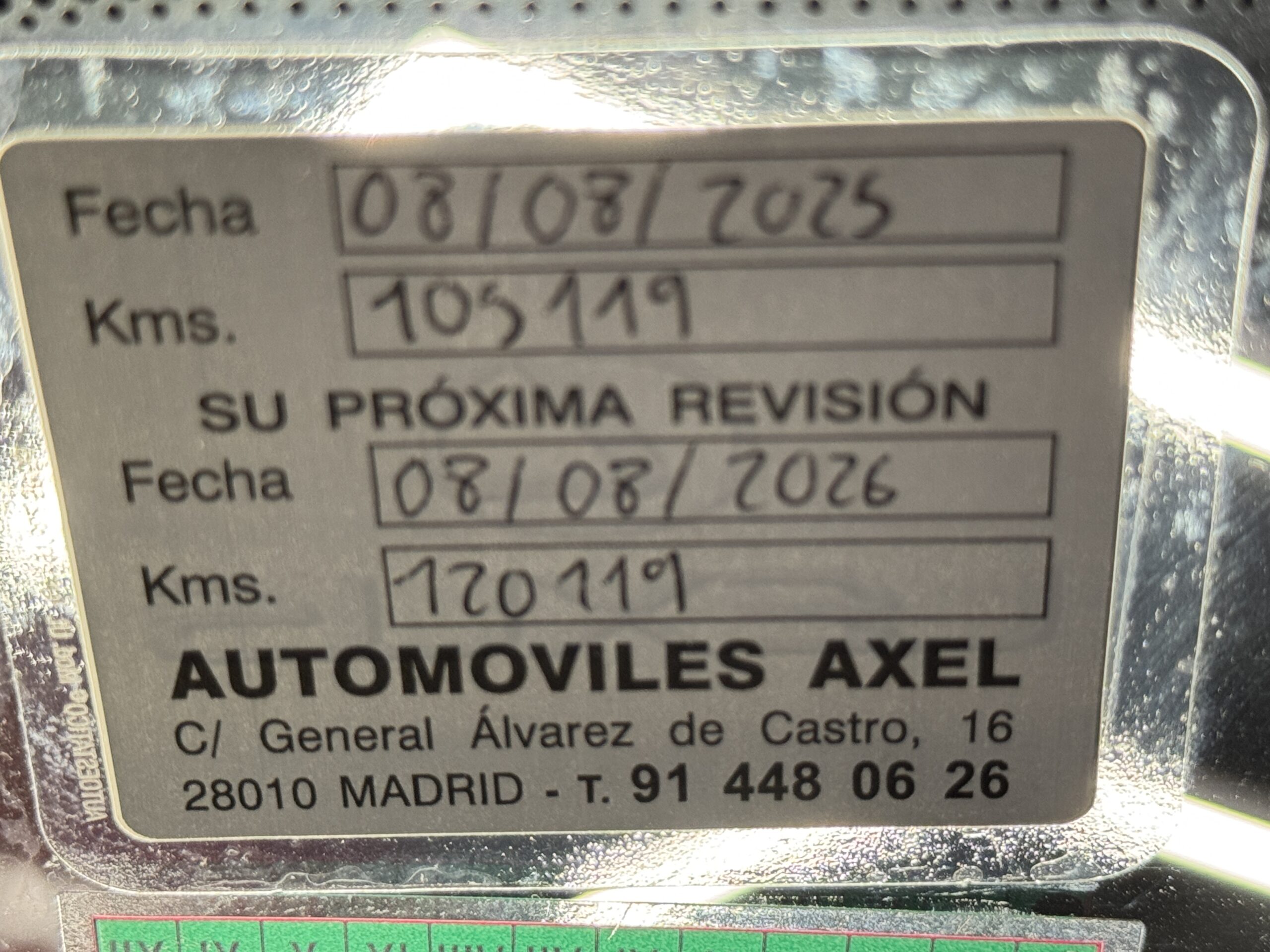 Certificado de kilometraje y no siniestralidad por escrito